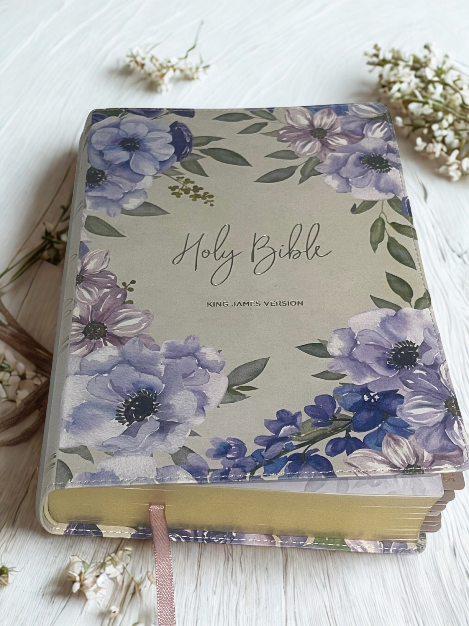 Floral Holy Bible with Gold accent Bible tabs(KJV)