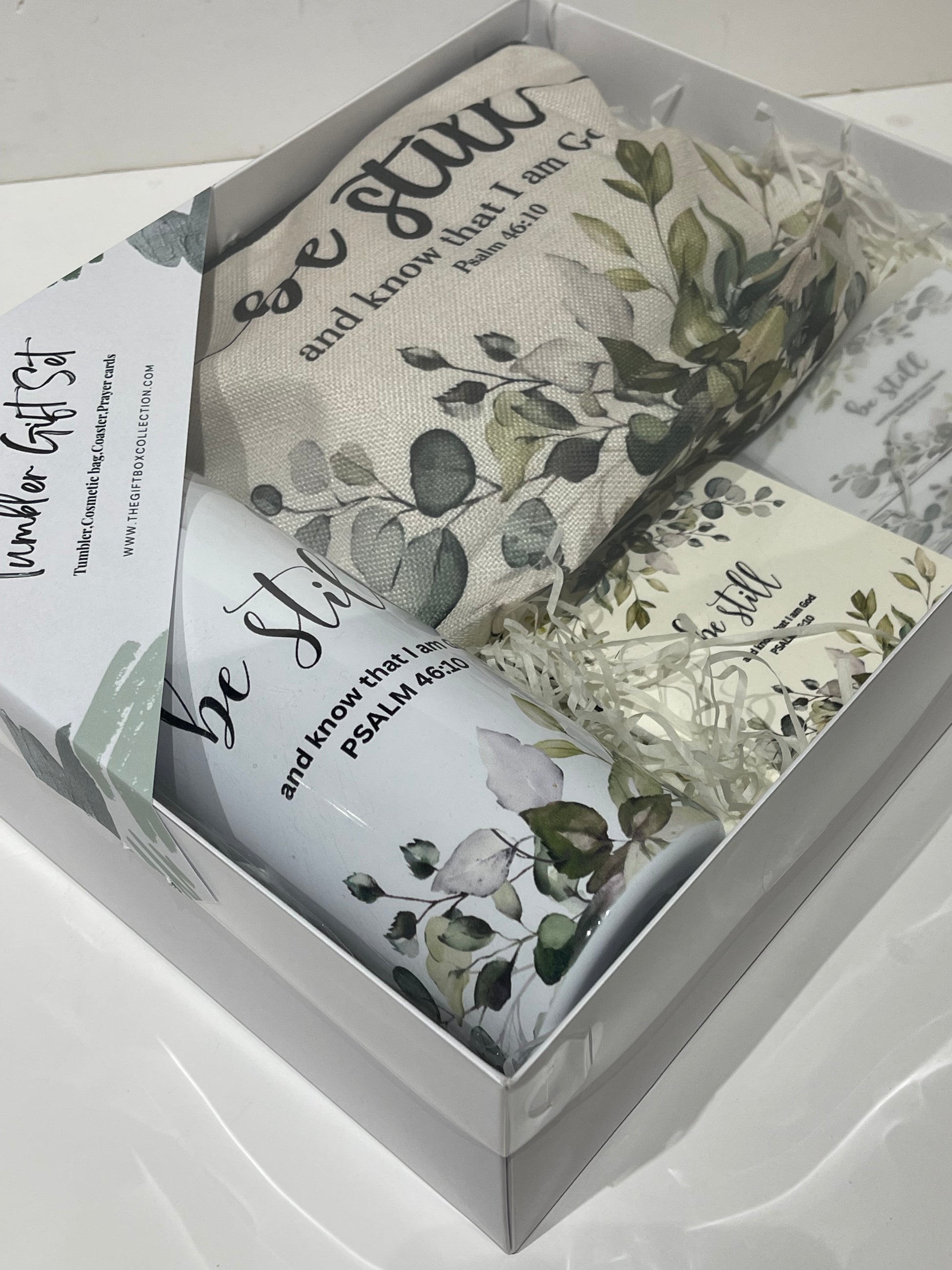 Elevate your daily routine with our Tumbler Gift Set. Keep drinks hot or cold for hours with the double-walled insulated tumbler and matching coaster. Our beautifully designed prayer cards offer daily encouragement, while the chic cosmetic bag keeps your essentials organized. The perfect blend of function, style, and spiritual inspiration. Perfect for gifting or personal use.